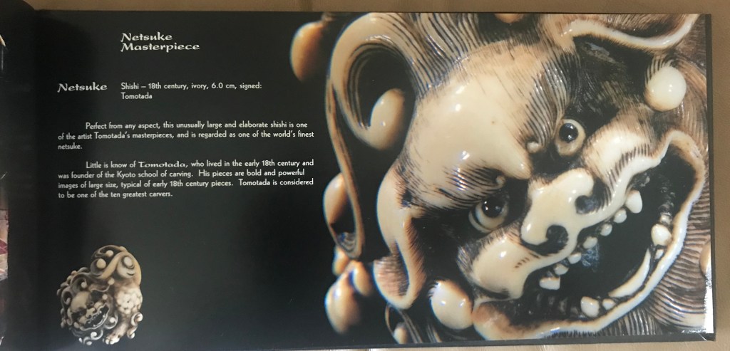 netsuke’s are a small ornamental toggle like piece, usually of carved ivory, used to attach a medicine box, pipe, or tobacco pouch to the obi (sash) of a Japanese man’s traditional dress. An art form Dr. Kurstin had been collecting for years and was enamored with. Now the child within me wished to learn more!